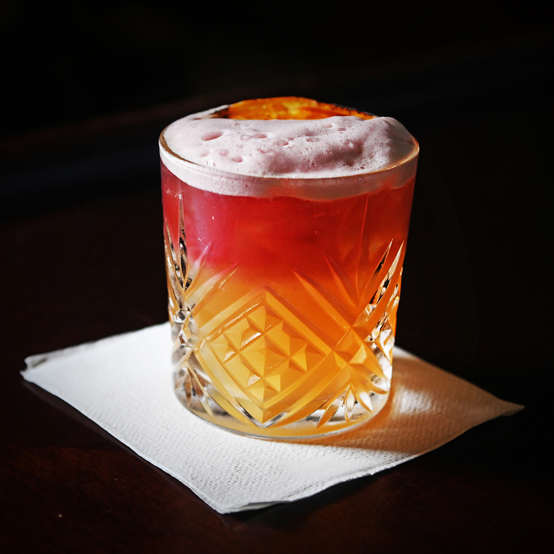 Add rye whiskey, maple syrup, amaretto, sweet vermouth and applewood liquid smoke into a mixing glass with ice and stir well until chilled.
