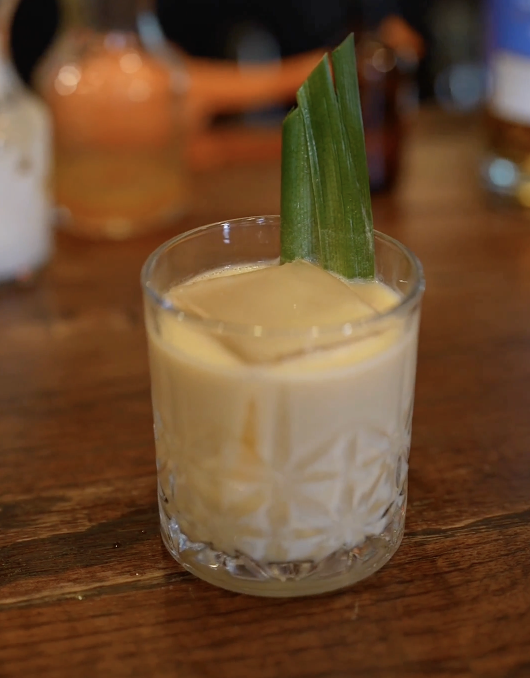 In a mixing glass, add the bourbon, coffee liqueur, espresso, tonic syrup, chocolate bitters and a splash of soda water. Add ice and stir. Pour liquid into rocks glass over a large ice cube. Garnish with a flamed orange peel. Serve!
