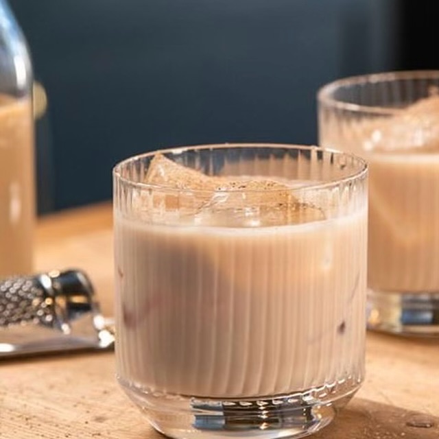 Stir, fine strain, and pour over fresh ice. Garnish with Tajin dusted orange rose.