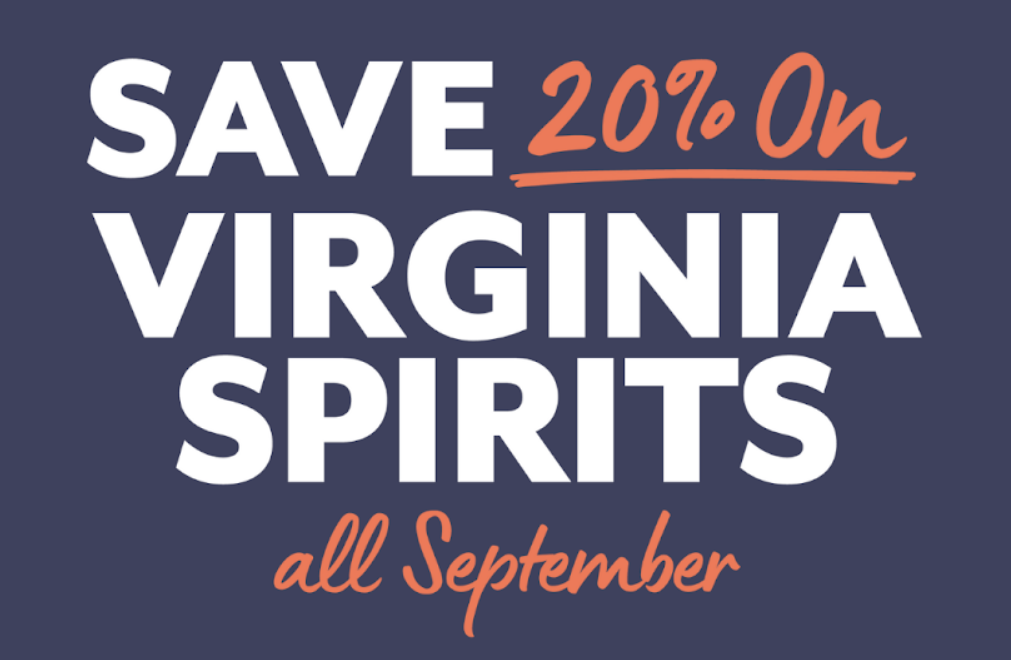 Each September, Virginia ABC celebrates Virginia Spirits Month with 20% off Virginia-made spirits statewide — available in ABC stores and distillery bottle shops.